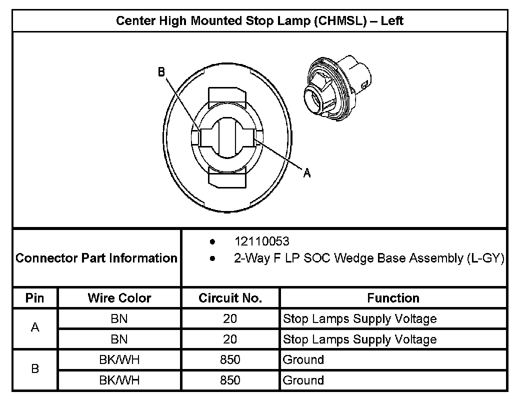 Center High Mounted Stop Lamp (CHMSL) - Left: