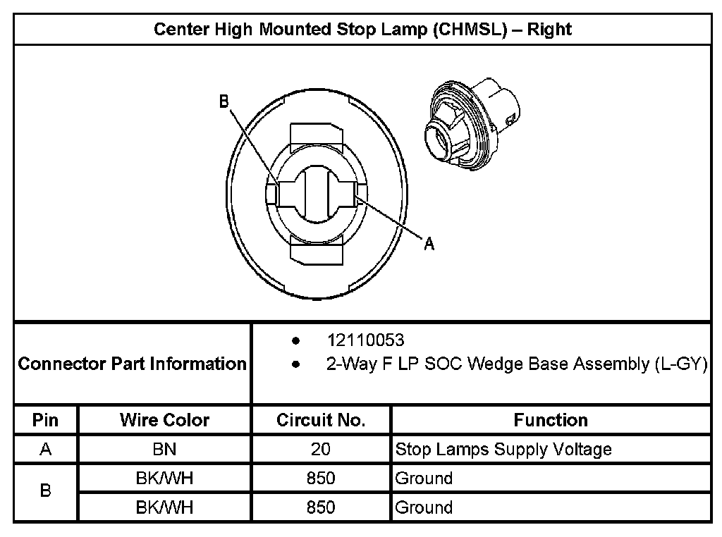 Center High Mounted Stop Lamp (CHMSL) - Right: