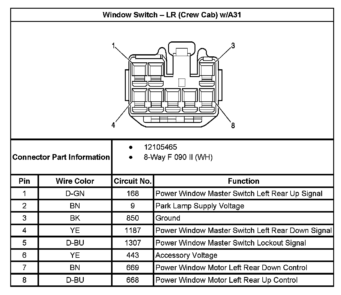 Window Switch - LR (Crew Cab) With RPO Code A31:
