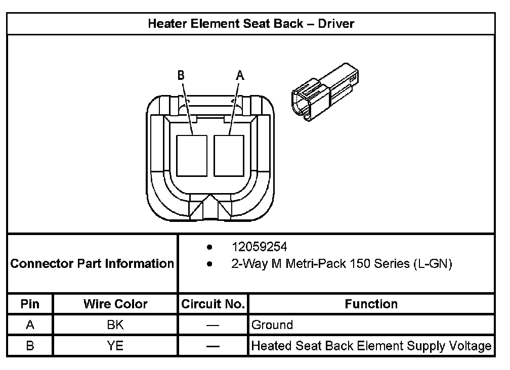 Heater Element Seat Back - Driver: