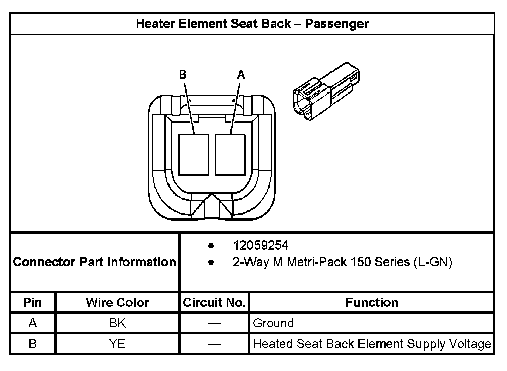 Heater Element Seat Back - Passenger: