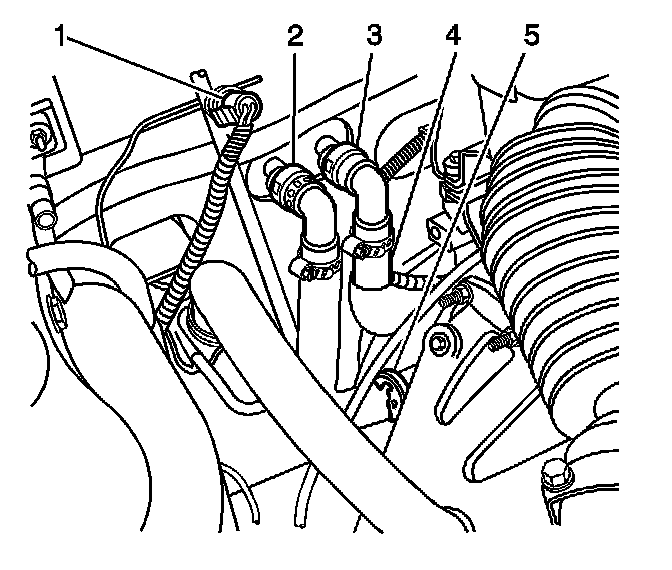 5. Disconnect the heater hose quick connects (2) and (3) from the heater core.