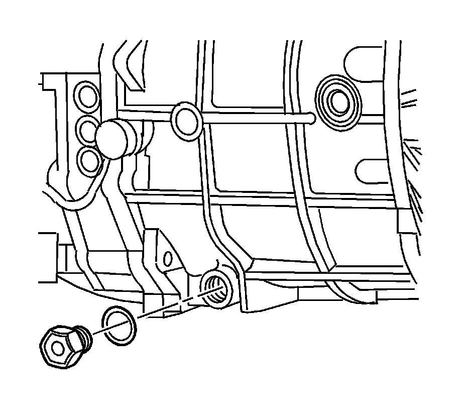 4. Remove the transmission fluid drain plug and washer. Discard the washer. Allow the transmission fluid to drain into the container.