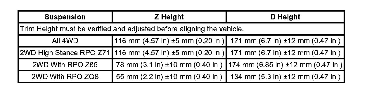 Trim Height Specifications: