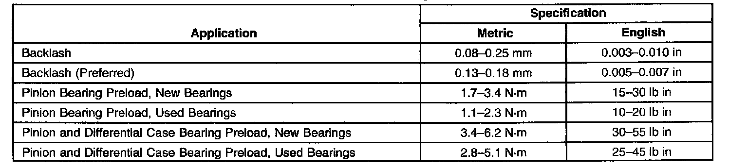 Axle Preload and Backlash Specifications