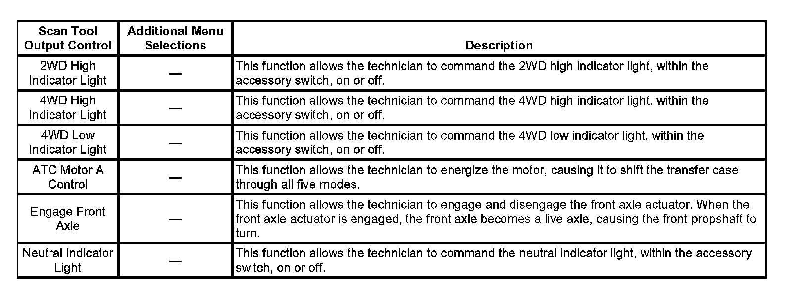 Scan Tool Output Controls: