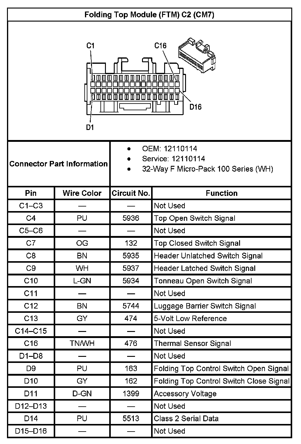 Folding Top Module (FTM) C2 (With RPO Code CM7):