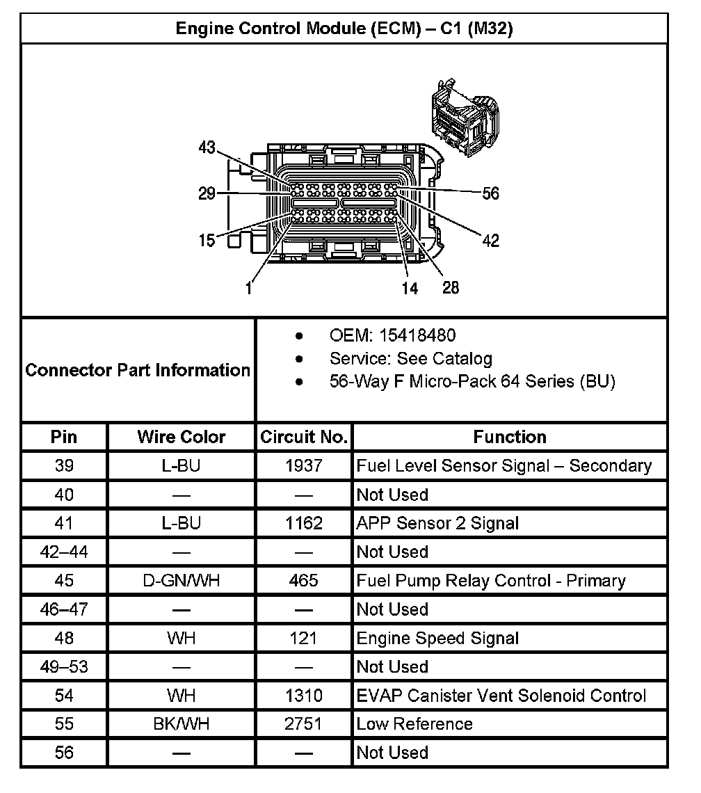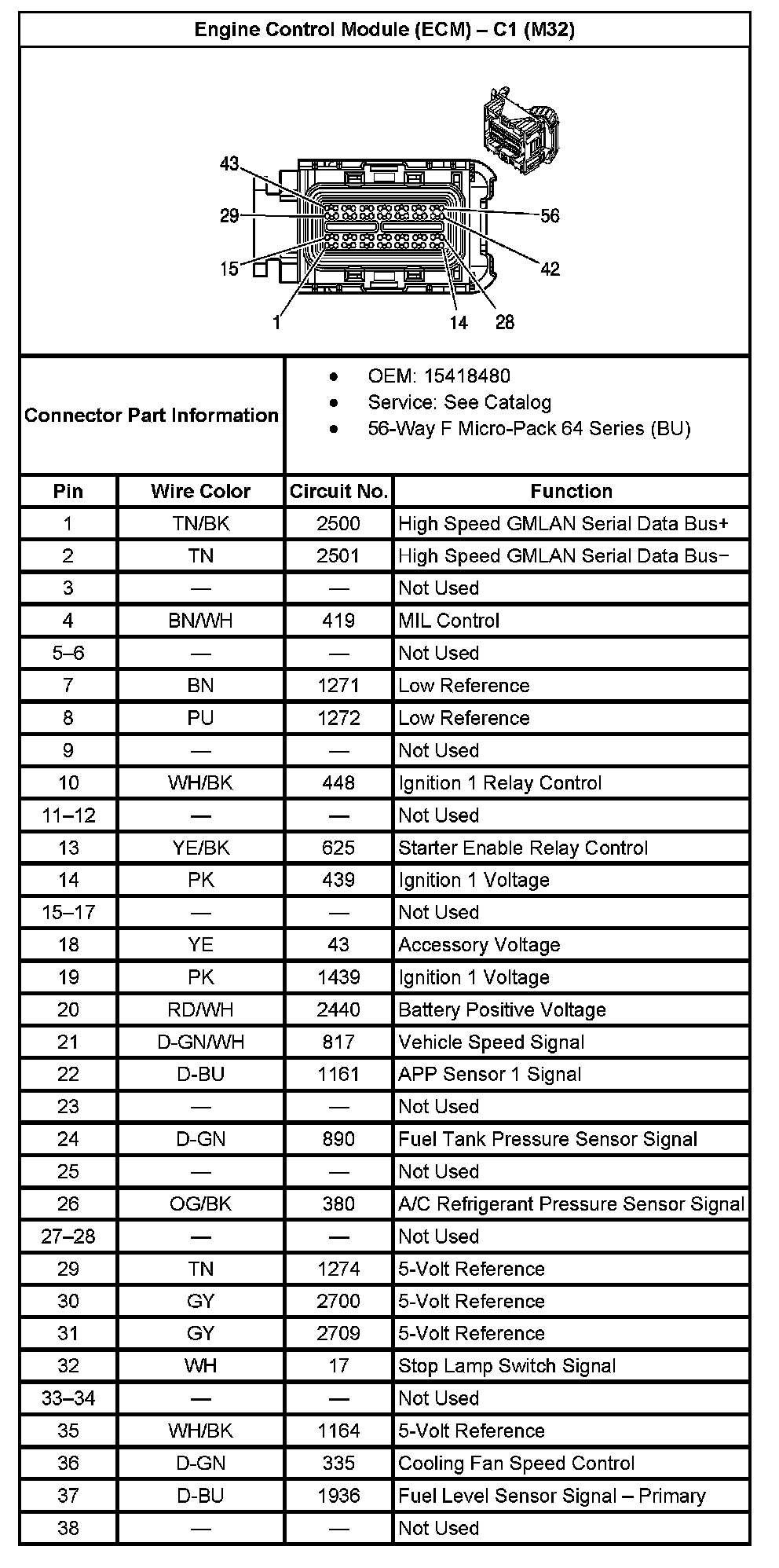 Engine Control Module (ECM) - C1 (With RPO Code M32) (Part 1):