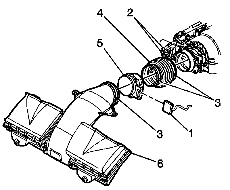 Tighten air intake duct and MAF/IAT sensor (2) to 4 N.m (35 lb in).
