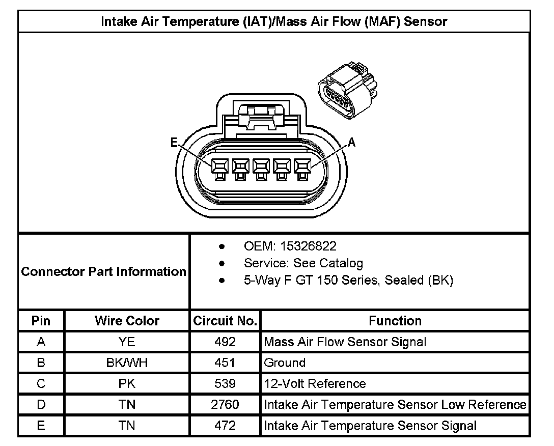 Intake Air Temperature (IAT)/Mass Air Flow (MAF) Sensor: