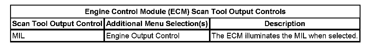 Engine Control Module (ECM) Scan Tool Output Controls: