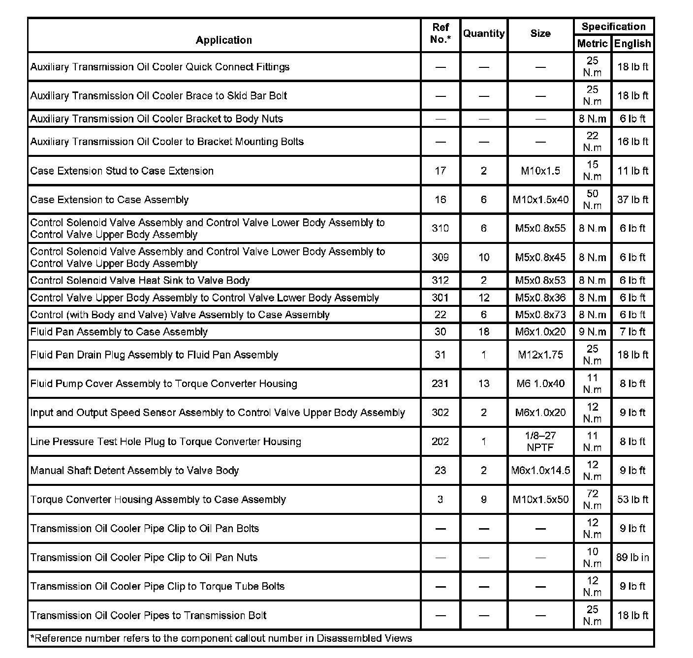 Fastener Tightening Specifications: