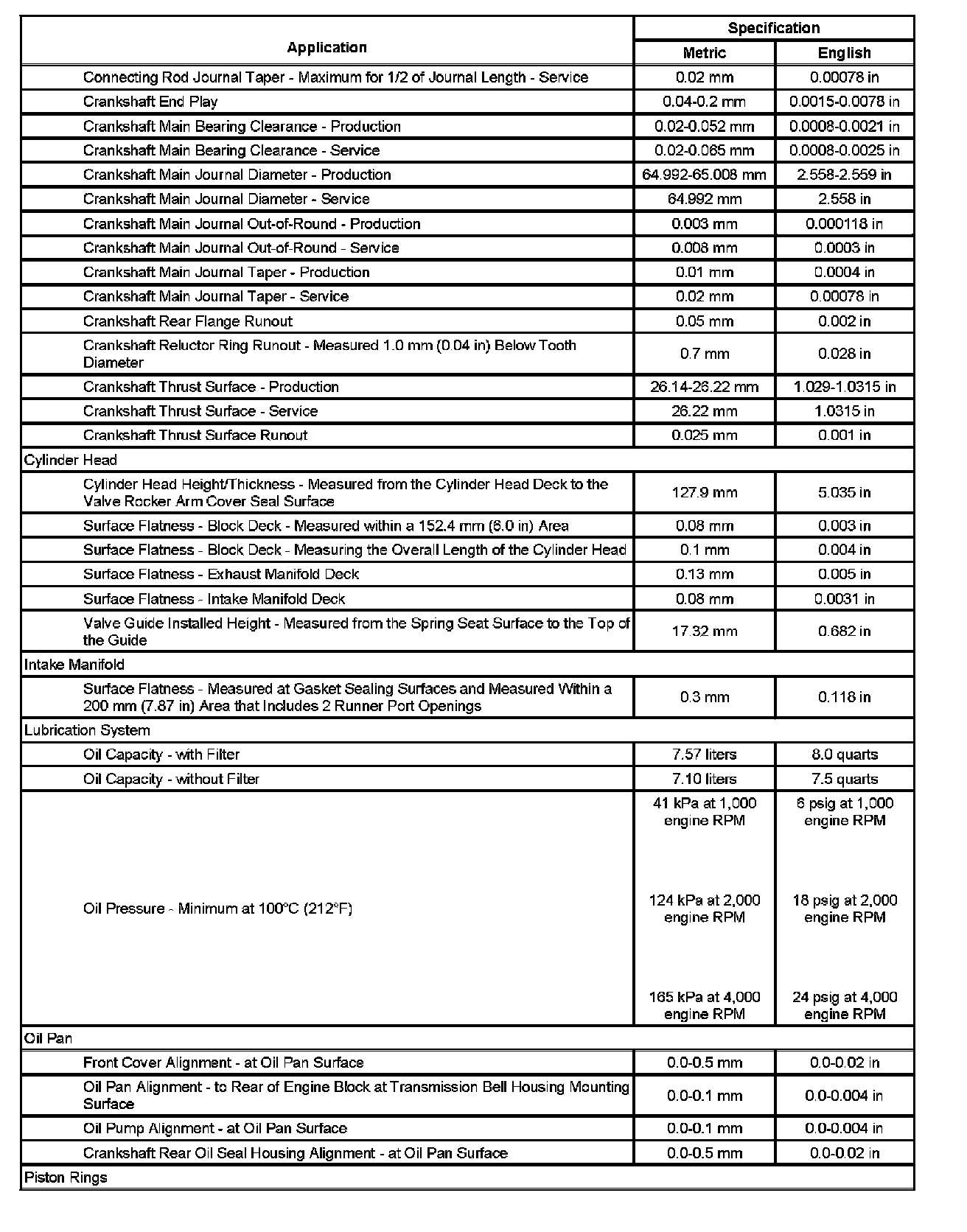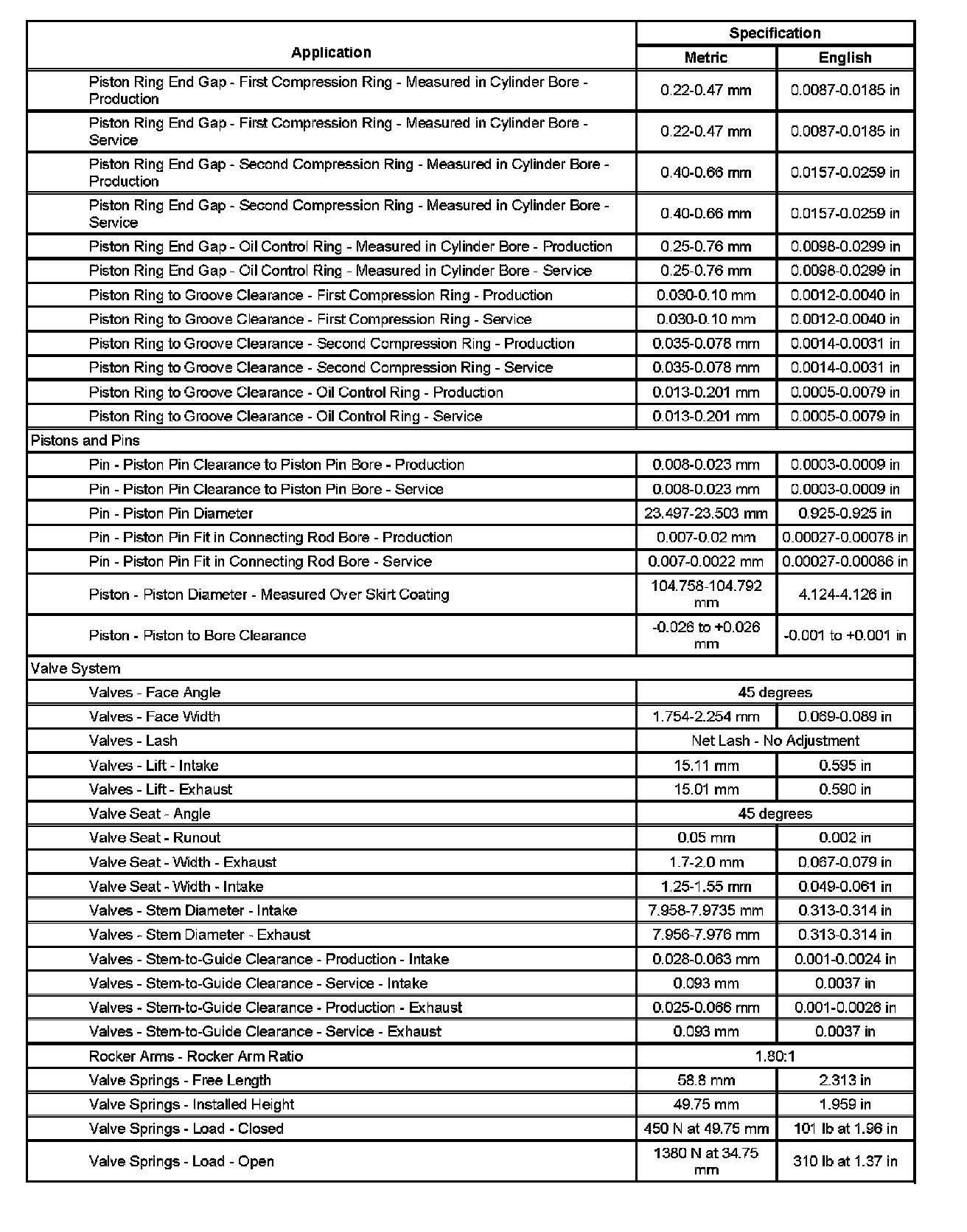 Engine Mechanical Specifications