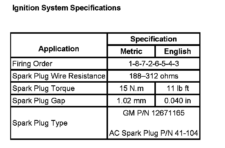Ignition System Specifications: