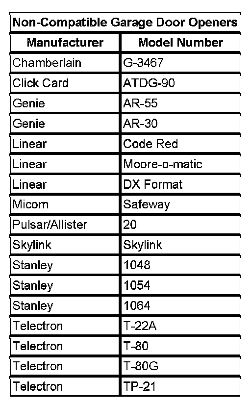 IMPORTANT: Do not use the garage door opener (GDO) with any garage door opener that does not have the stop and reverse safety feature. This includes any garage door opener model manufactured before April 1, 1982.