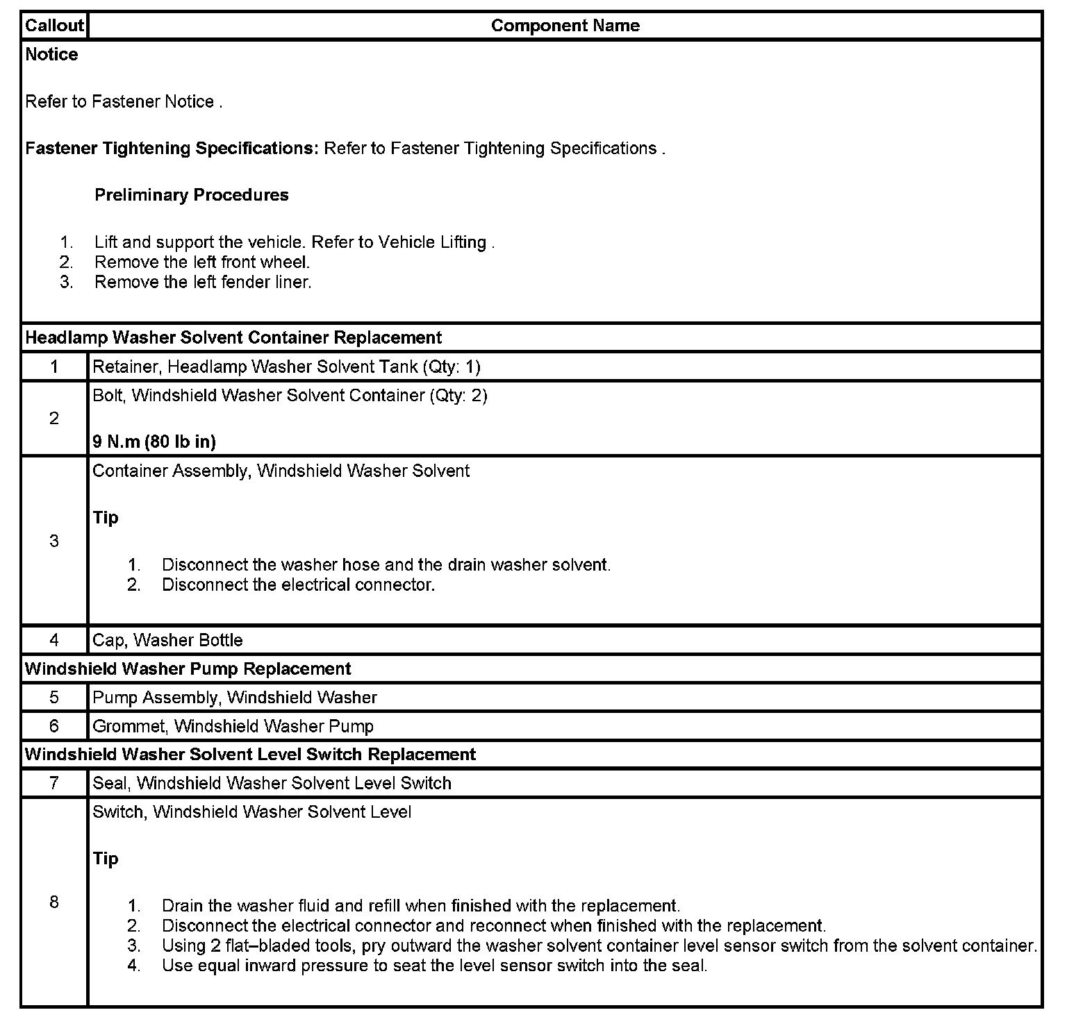 SOLVENT CONTAINER, PUMP, LEVEL SENSOR REPLACEMENT - WINDSHIELD WASHER
