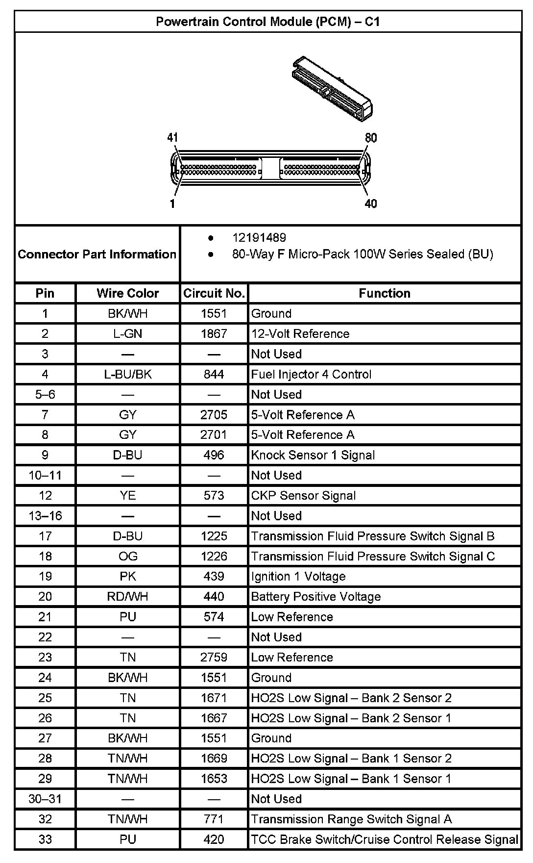 Powertrain Control Module (PCM) - C1 (Part 1):