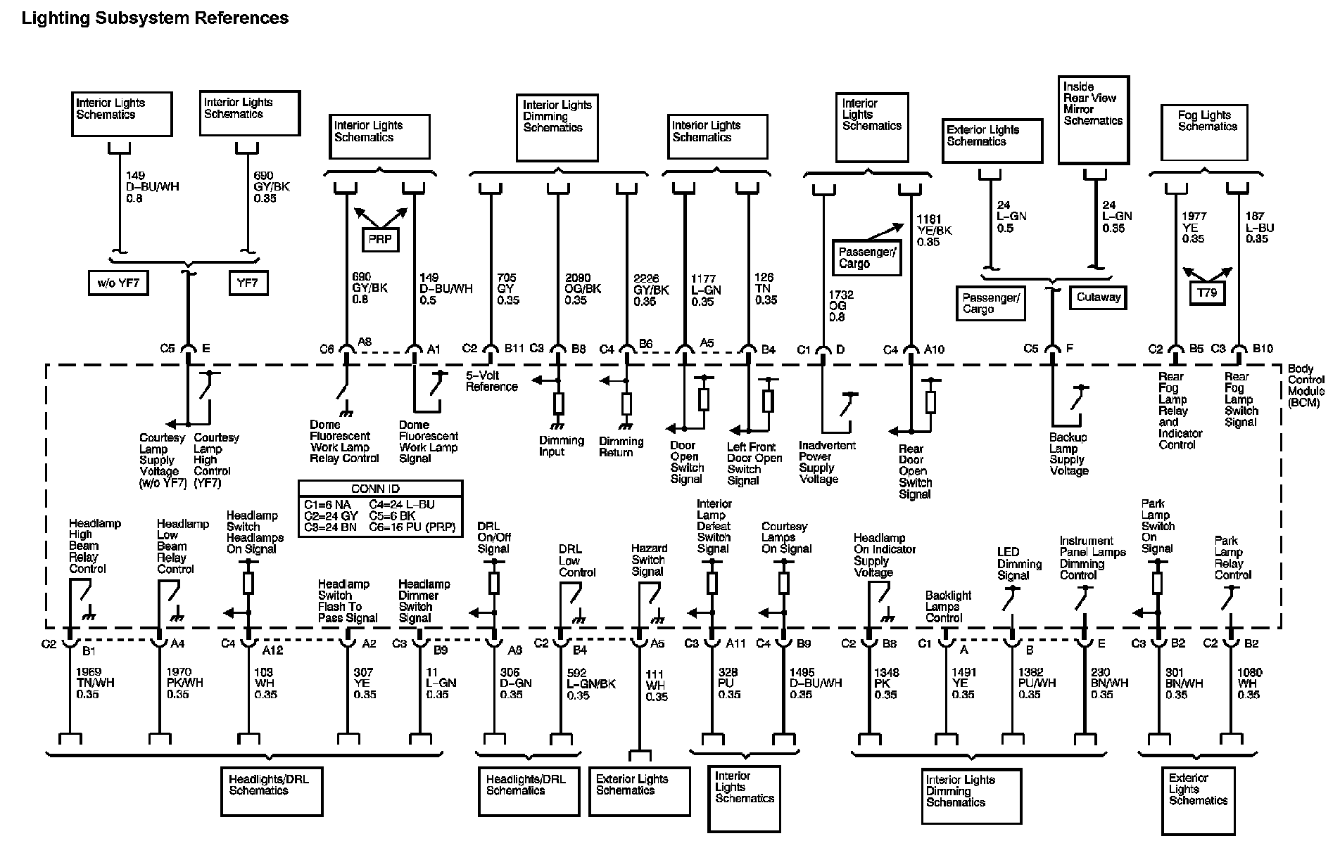 The locations for the Connectors, Grounds, Splices, and Grommets shown within these diagrams can be found via their numbers at Vehicle Locations.