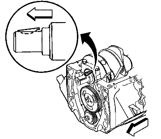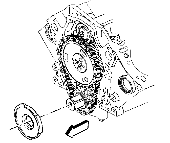 Important: Do not use a hammer to install the camshaft sprocket onto the camshaft. To do so may dislodge the expansion cup plug (camshaft rear bearing hole).