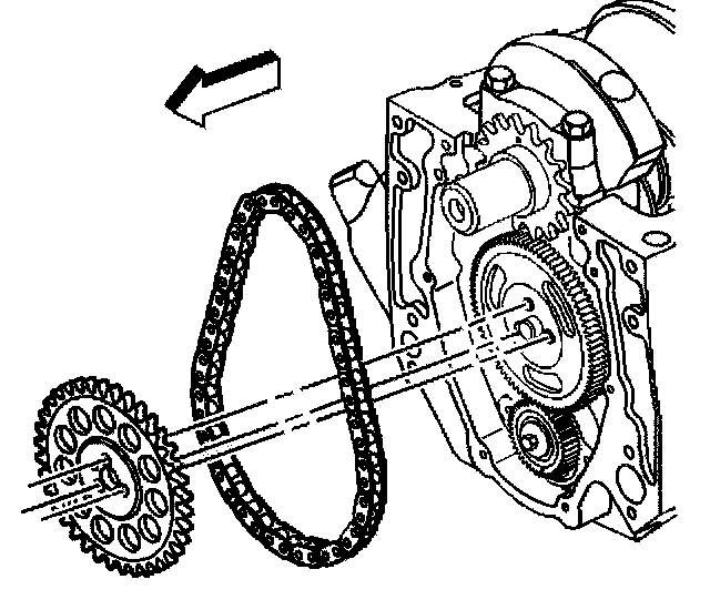 Notice: Align the timing marks before removing the timing chain. If it is necessary to turn either the camshaft or the crankshaft with the timing chain removed, loosen or remove the valve rocker arms. Turning either the crankshaft or camshaft with the timing chain removed may cause the pistons to contact the valves, resulting in damage.