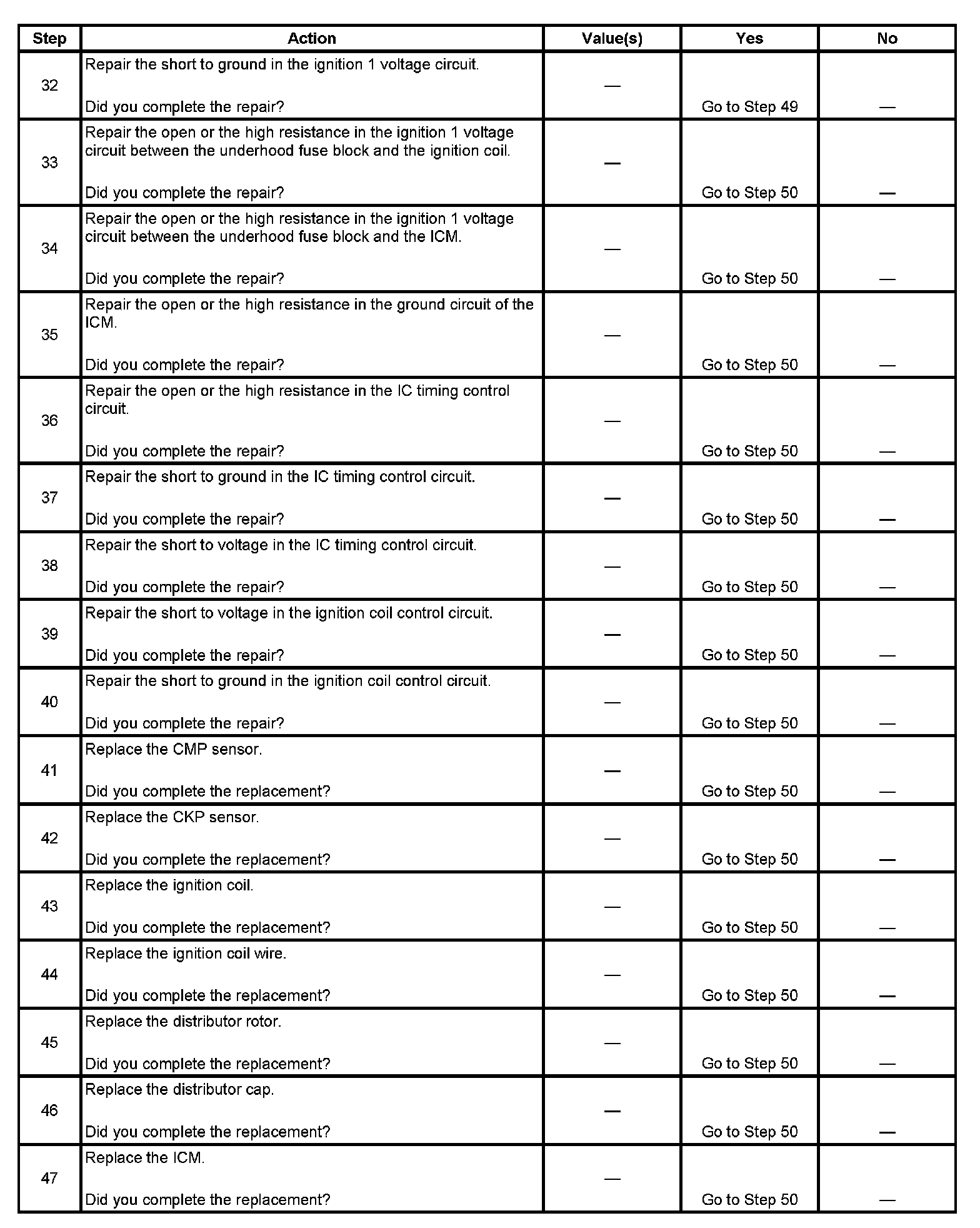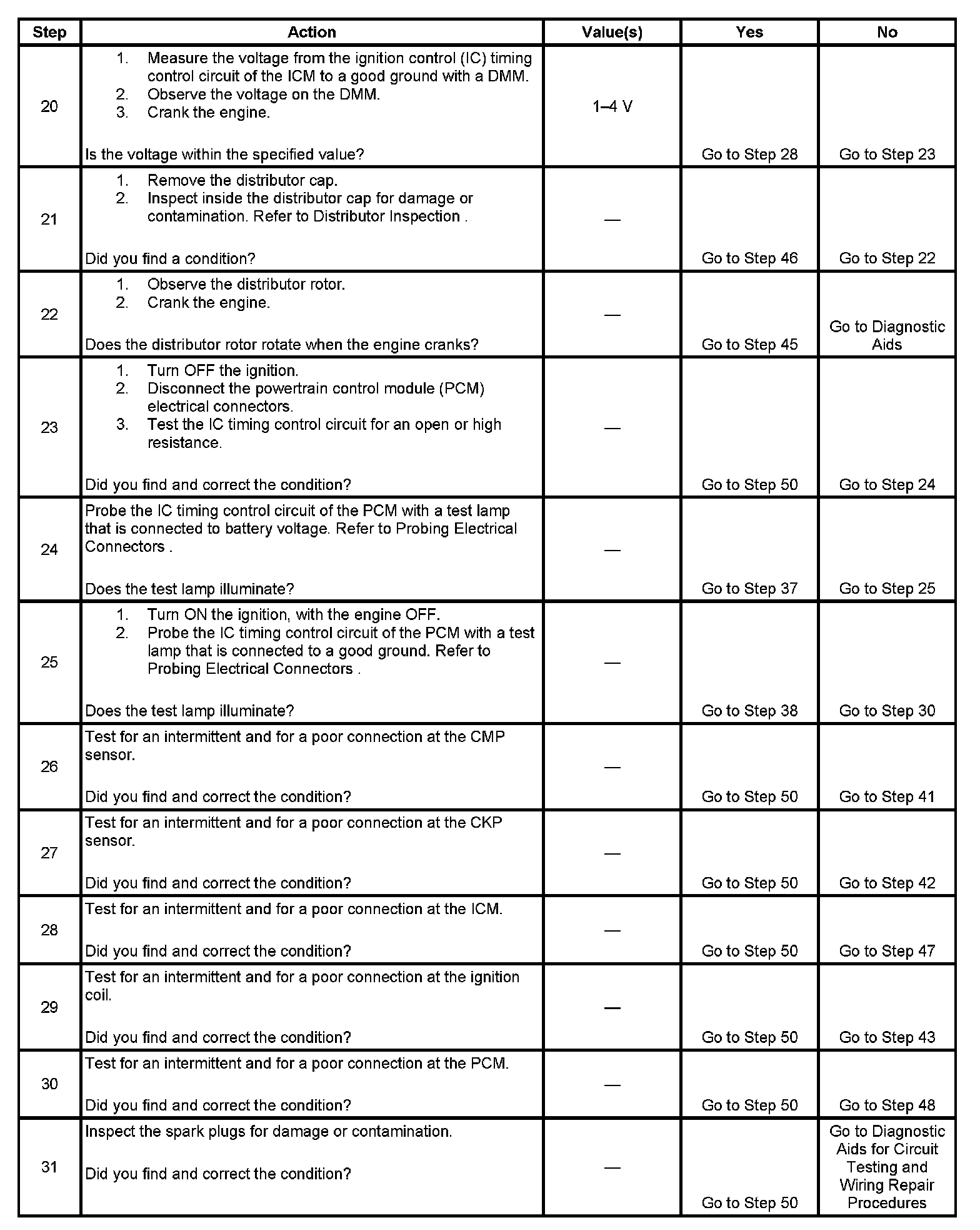 The distributor ignition (DI) system diagnostic table assumes the following conditions: