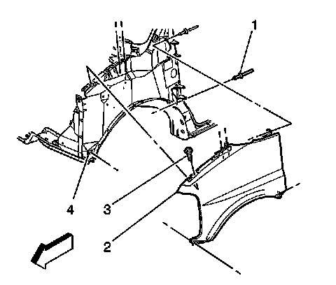 8. Remove the bolts (3) retaining the front fender (2) to the body.