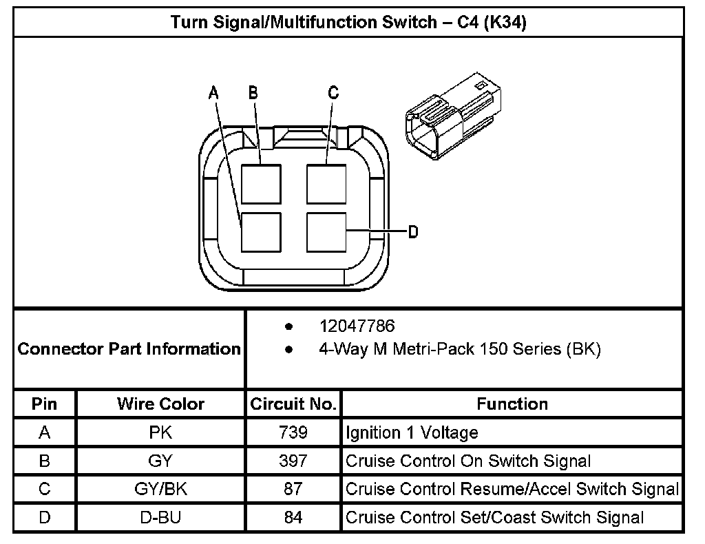Turn Signal/Multifunction Switch - C4: