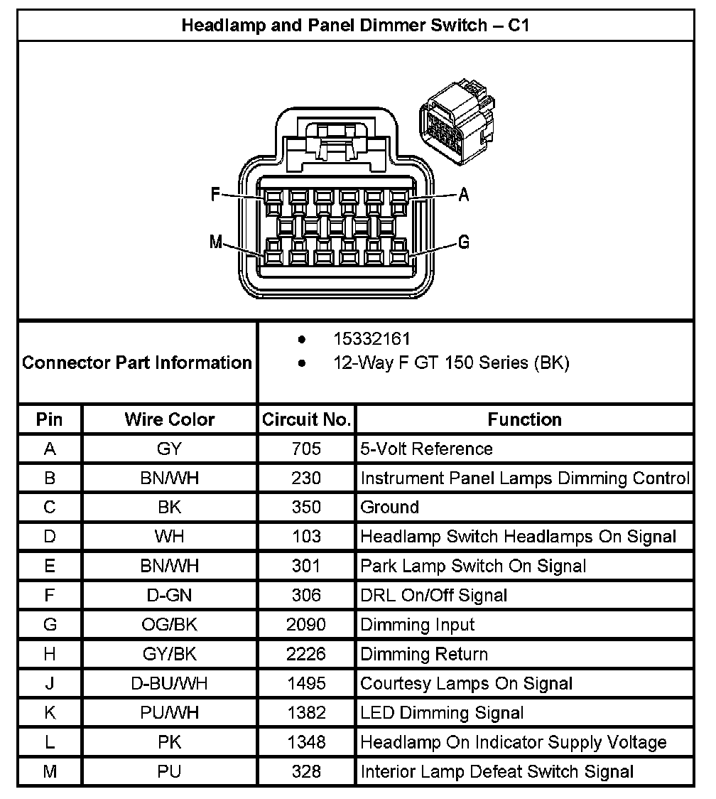 Headlamp And Panel Dimmer Switch - C1: