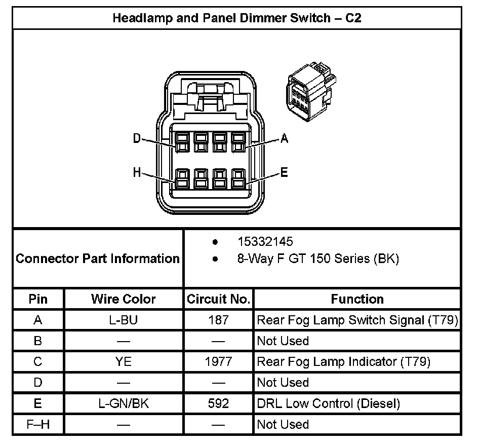 Headlamp And Panel Dimmer Switch - C2: