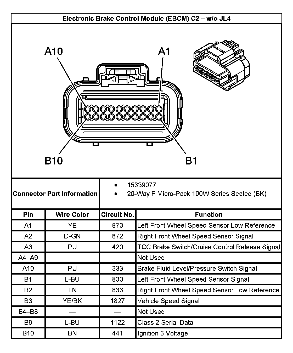 Electronic Brake Control Module (EBCM) C2 - W/O JL4: