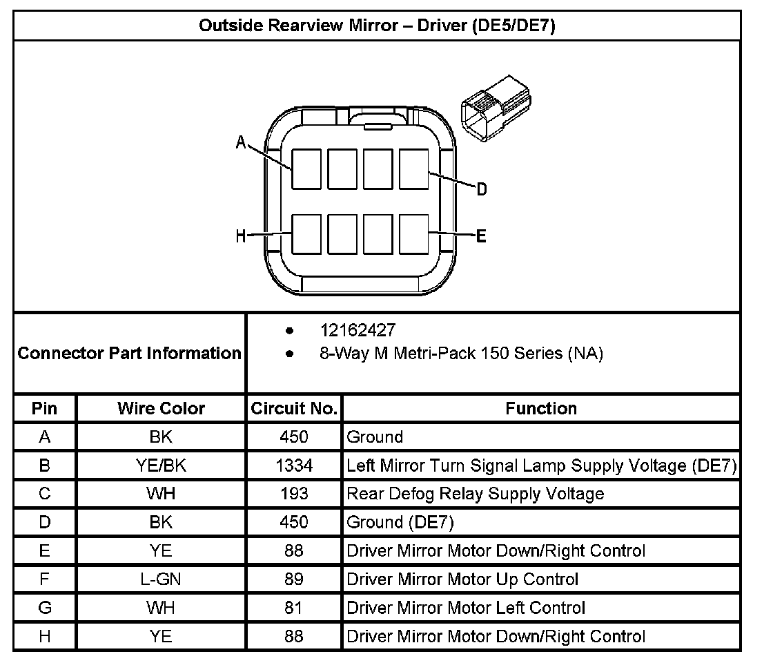 Outside ReaView Mirror - Driver (With RPO Code DE5/DE7):