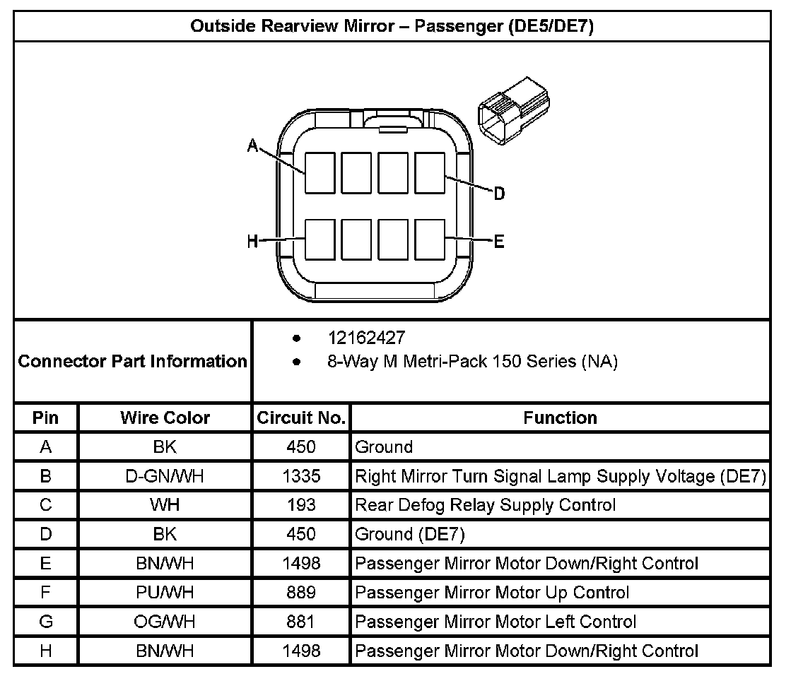 Outside Review Mirror - Passenger (With RPO Code DE5/DE7):