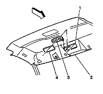 2. Remove the front control switch (3) by unsnapping the retainers from the headliner.