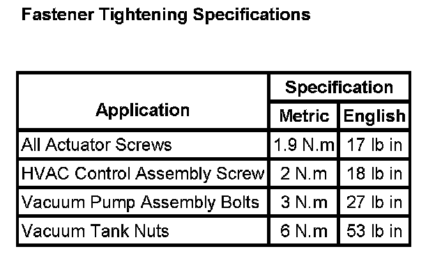 Fastener Tightening Specifications: