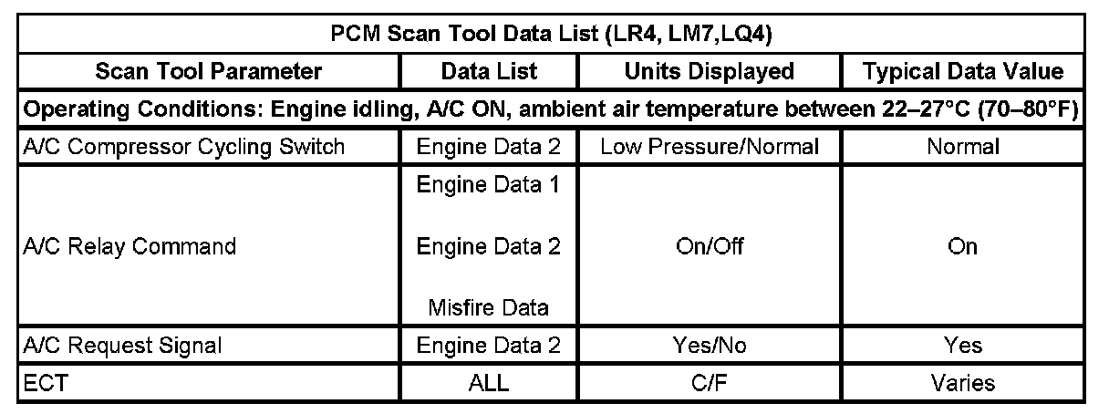 Use the Scan Tool Data Display Values and Definitions Information in order to assist in diagnosing the Powertrain Control Module (PCM) problems. Compare the vehicles actual scan tool data with the typical data display value table information. Use the data information in order to aid in understanding the nature of the problem when the vehicle does not match with the typical data display values.