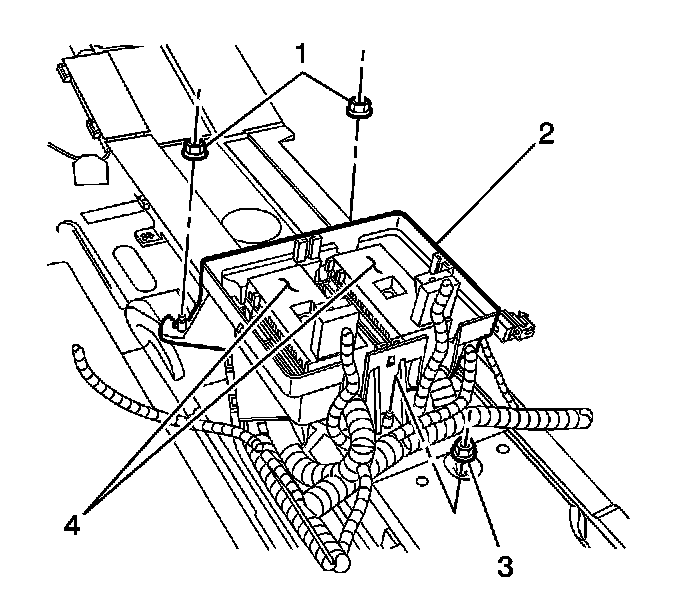 2. Install the junction block base (3) to the floor studs.Ensure the remaining electrical connections (4, 5) are not captured under the junction block base after installations the floor studs.