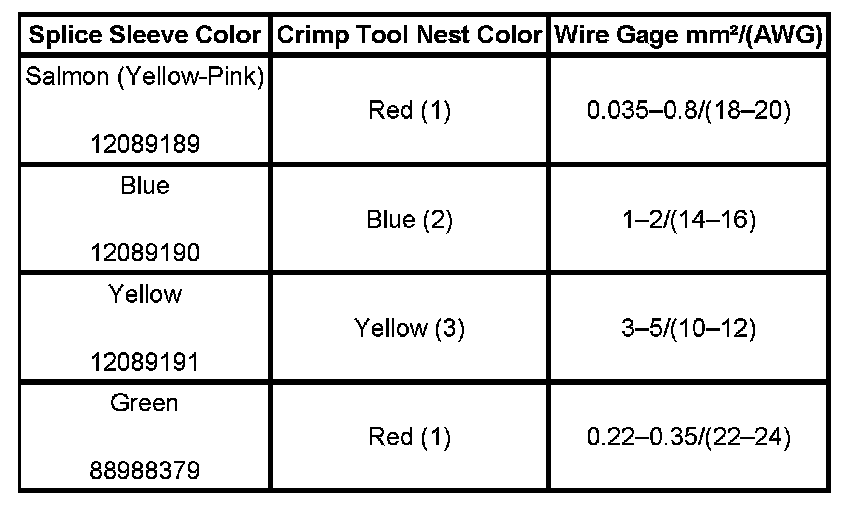 6. Select the proper duraseal splice sleeve according to the wire size. Refer to the table at the beginning of the repair procedure for the color coding of the duraseal splice sleeves and the crimp tool nests.