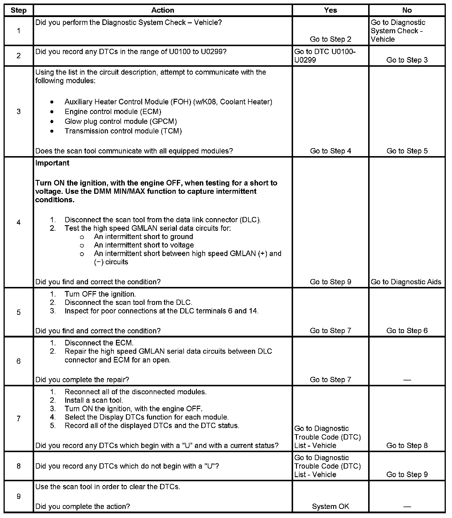 - A short between high speed GMLAN (+) and high speed GMLAN (-) circuits