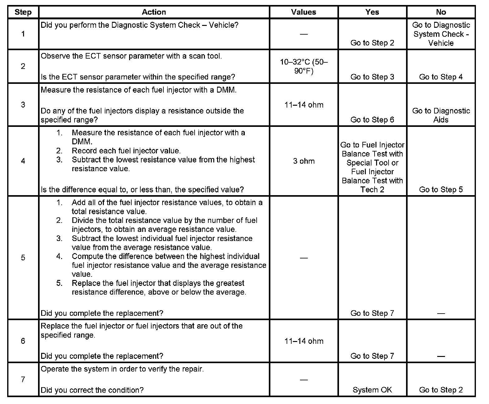 - If the fuel injector coil test does not isolate the condition perform the fuel injector balance test. Refer to Fuel Injector Balance Test with Special Tool or Fuel Injector Balance Test with Tech 2. Fuel Injector Balance Test With Special Tool Fuel Injector Balance Test With Tech 2