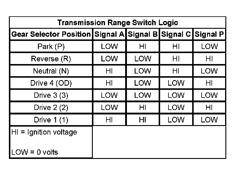 Transmission Range Switch Logic: