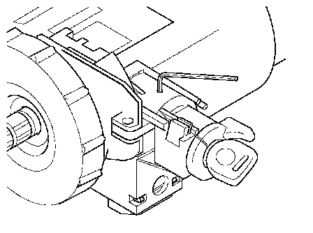 9. Insert J-42759 into the lock cylinder housing to release the tabs on the ignition switch.