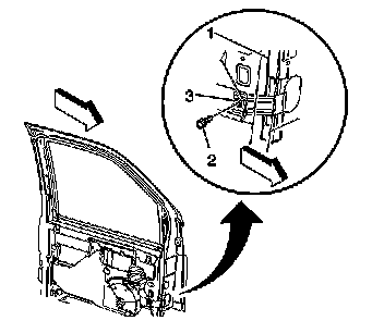 1. Remove the front door trim panel. Refer to Trim Panel Replacement - Side Front Door (Service and Repair).