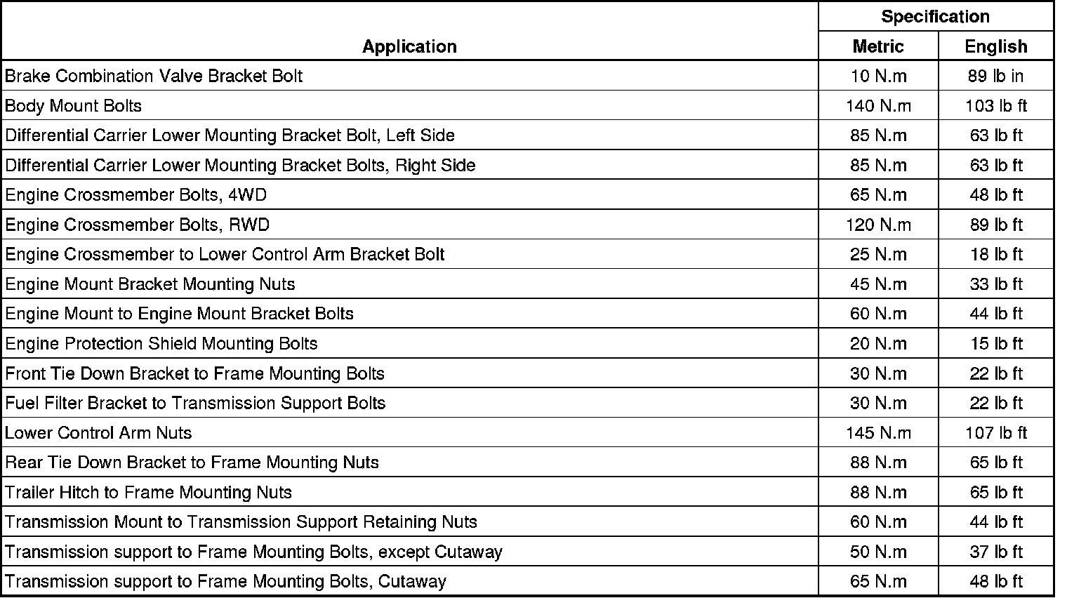 Fastener Tightening Specifications