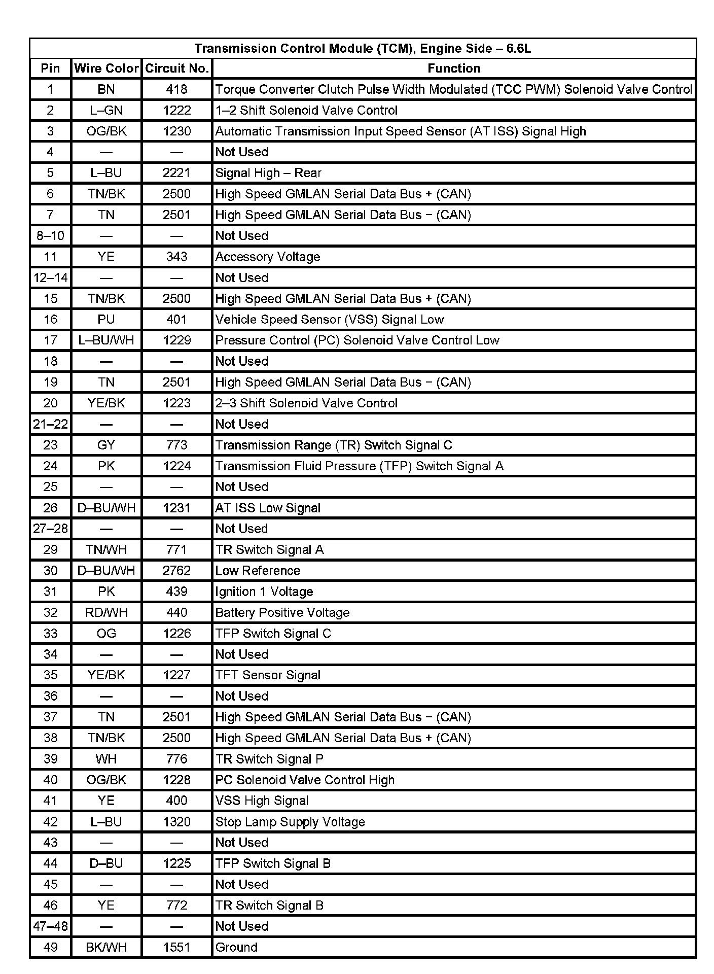 Transmission Control Module (TCM), Engine Side - 6.6L: