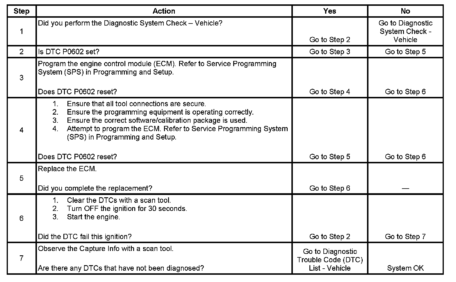 2. A DTC P0602 indicates that the ECM is not programmed.
