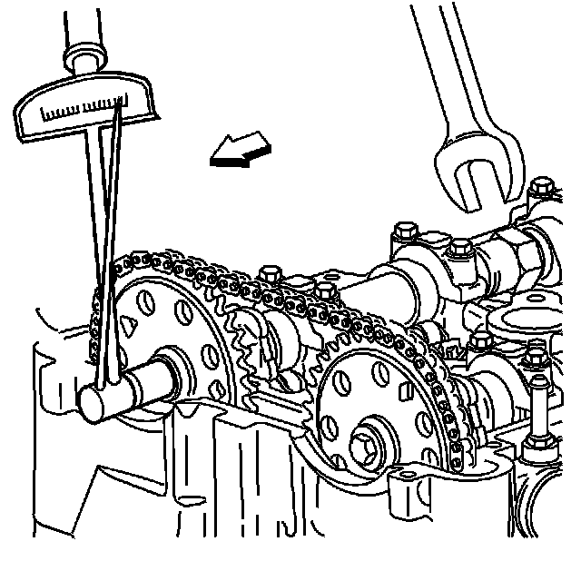 5. Important: To rotate the camshaft, use a 24 mm open-end wrench on the camshaft flats. The camshaft should be rotated in a clockwise direction only, facing camshaft sprockets from the passenger side of the vehicle.