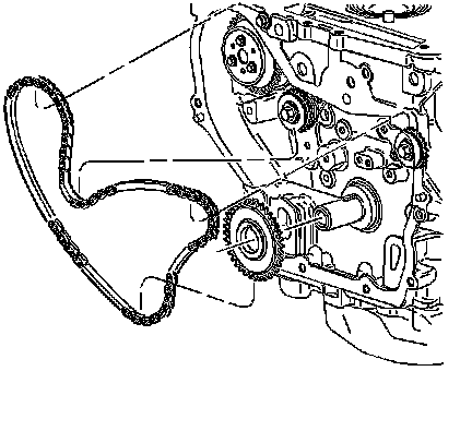 3 Place the chain (3) on the water pump drive sprocket (alignment is not critical).