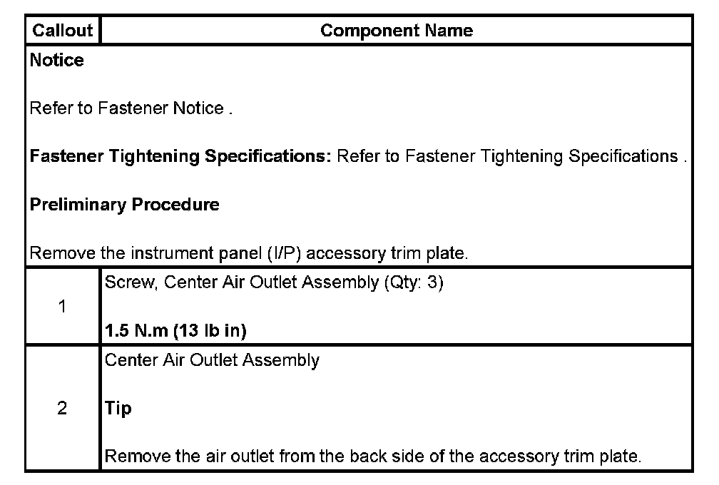 AIR OUTLET REPLACEMENT - INSTRUMENT PANEL - CENTER