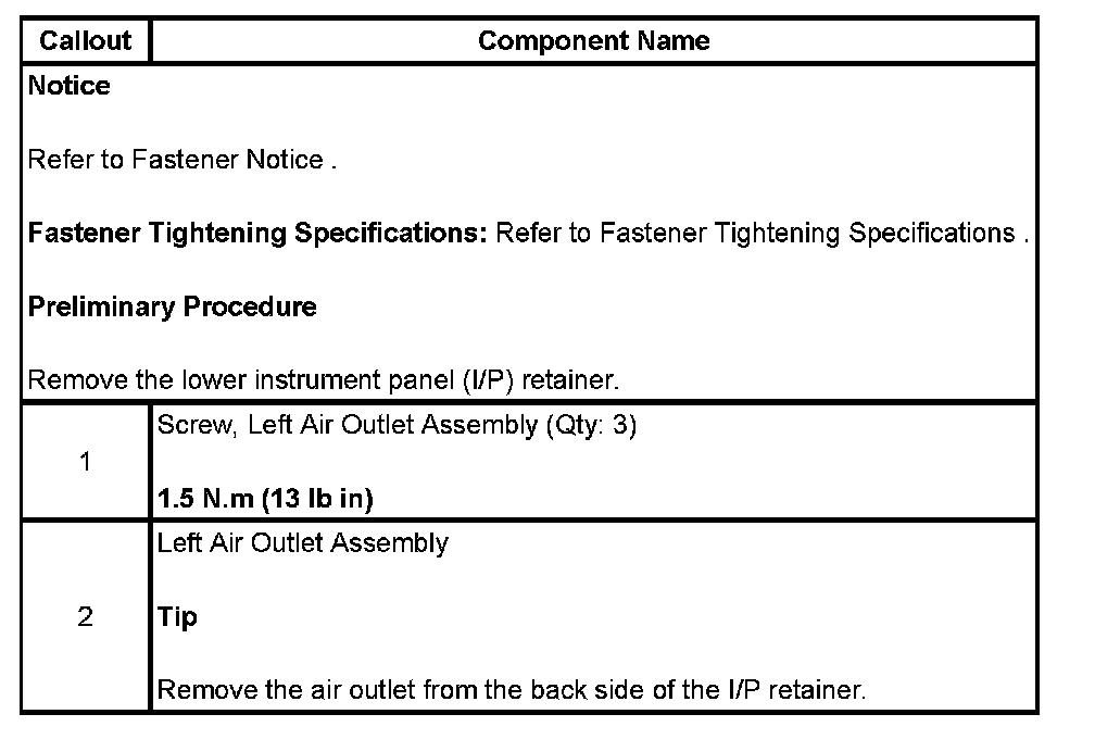 AIR OUTLET REPLACEMENT - INSTRUMENT PANEL - LEFT