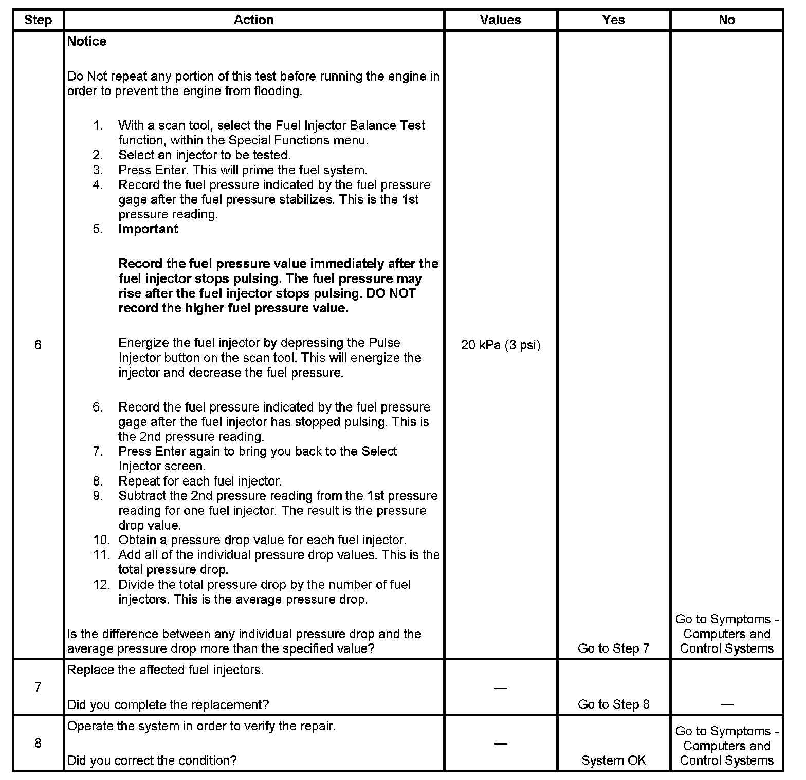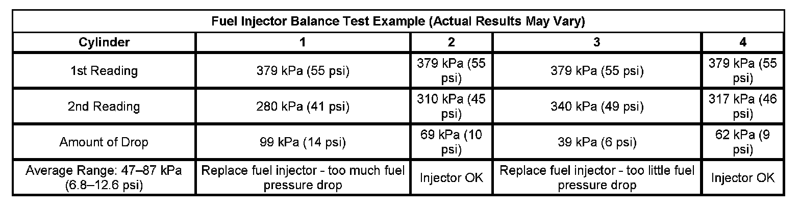Fuel Injector Balance Test Example (Actual Results May Vary):